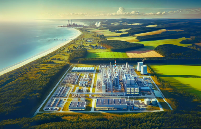 Landschaft mit Windrädern und Industrieanlagen – Symbol für ELiA und digitale BImSchG-Anträge in Niedersachsen